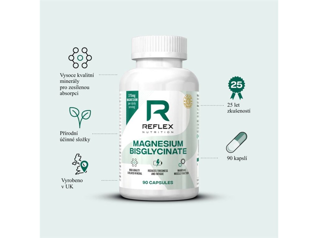 Vysoká kvalita garantovaná značkou Reflex Nutrition, původ a čistota použité složky + minimum balastních aditiv. Bisglycinát hořečnatý je chelátovanou a pro tělo vysoce využitelnou formou hořčíku s garantovanou kvalitou laboratoře Albion. (Viz - Hořčík – synergní kombinace pufrovaného bisglycinátu hořečnatého).
