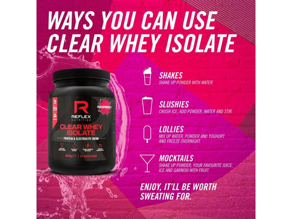 Na rozdíl od tradičních proteinových šejků, Clear Whey chutná jako svěží ovocný nápoj! Poskytuje 20 g proteinu na dávku a zároveň klíčové elektrolyty, takže jde o ideální drink pro posílení regenerace a hydrataci po náročném tréninku v horku, nebo při nadměrném pocení.