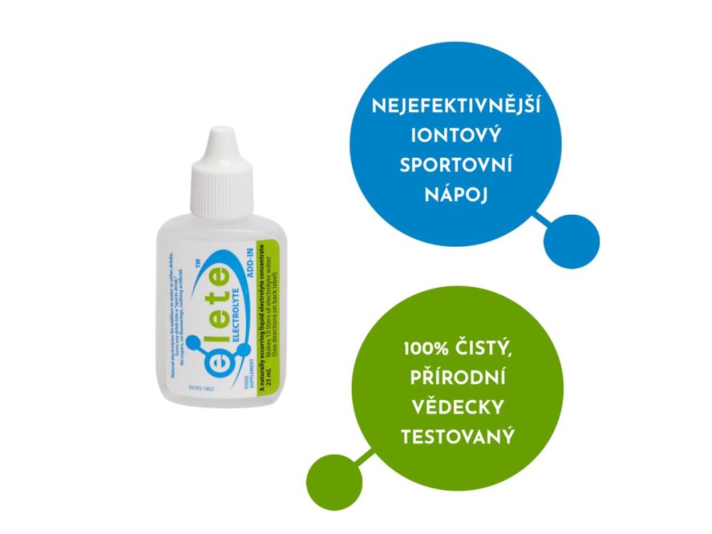 Klinická studie ukazuje, že Elete může snížit množství vody potřebné k hydrataci o více než 40 %. Jde o významný benefit, pokud zvážíme, jak je voda těžká pro nošení s sebou a že poznatek vzešel ze studie s hasiči lesních požárů v Kalifornii. Studie proběhla v létě 2008 na University of Montana - 8 hasičů dostávalo během pěti dnů intenzivního boje s lesním požárem vodu s přidaným Elete, zatímco jiných 8 dostávalo čistou vodu. Výsledky byly ohromující - skupina s vodou obohacenou o Elete potřebovala pro efektivní hydrataci vypít průměrně o 42,6 % méně tekutiny. Jinak řečeno, hasiči s čistou vodou museli vypít o 74 % vody víc, aby dosáhli stejné úrovně hydratace jako ti, co pili vodu obohacenou o Elete. (Zdroj: https://eletewater.co.uk/blogs/research/8029117-electrolyte-additives-for-hydration, https://pubmed.ncbi.nlm.nih.gov/18715125/)
