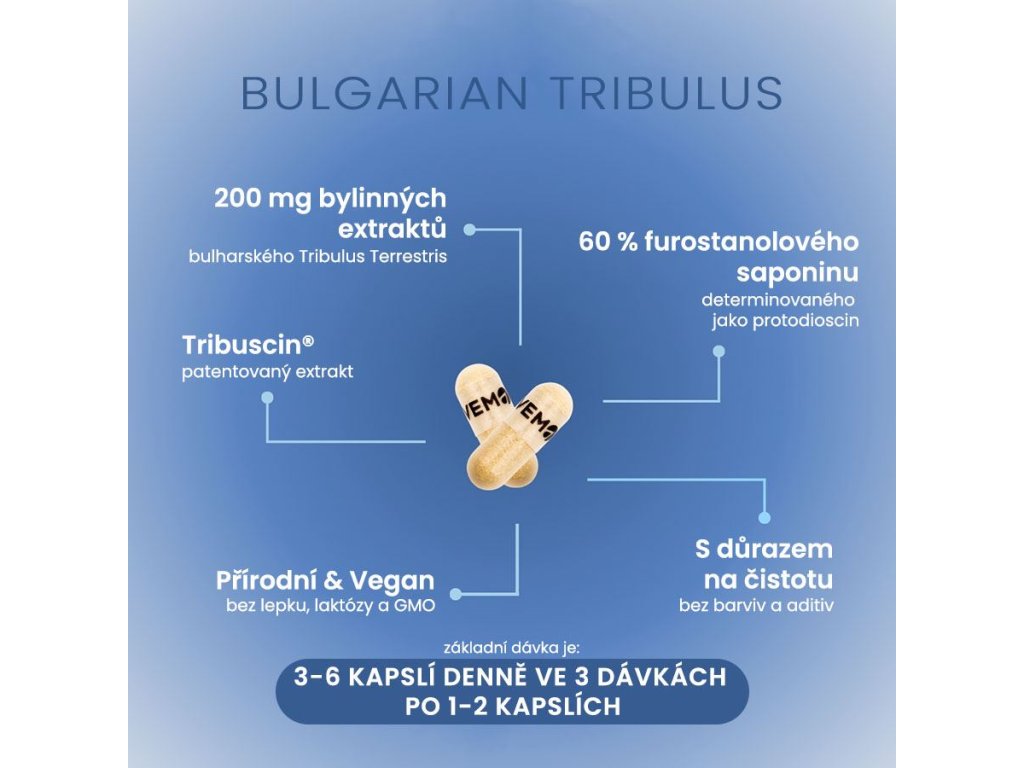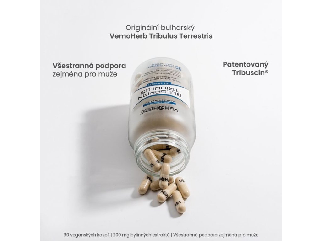 - Originální bulharský VemoHerb Tribulus Terrestris s garantovaným obsahem 60% protodioscinu (furostanolový saponin) [1, 2, 3, 4, 19, 20]