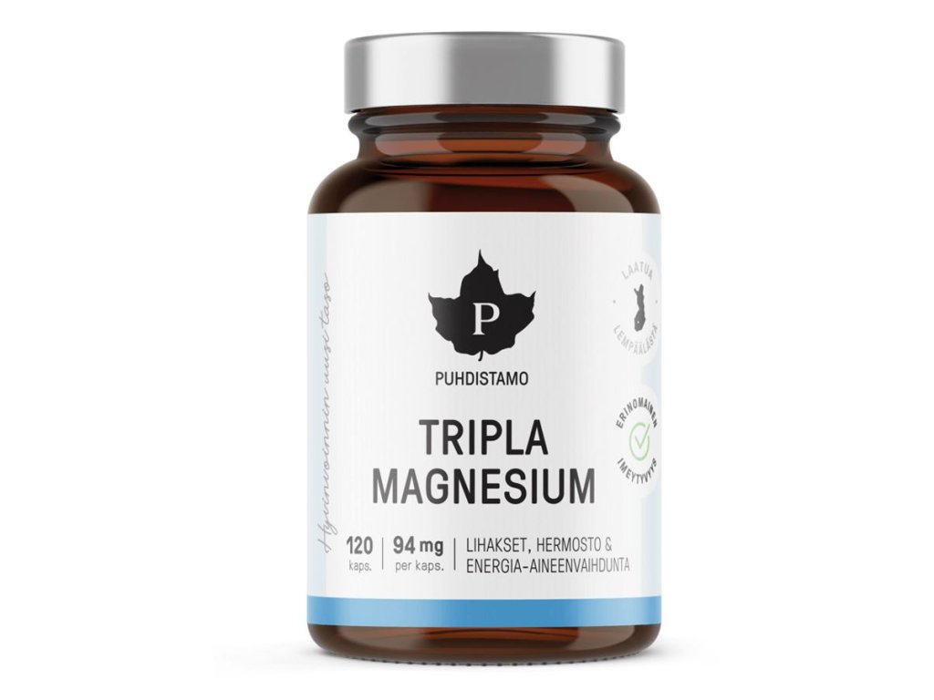 Tripple Magnesium obsahuje tři chelátově vázané formy hořčíku - malát hořečnatý, bisglycinát hořečnatý a taurát hořečnatý. Hořčík je v těchto formách vázaný s druhou látkou (kyselinou jablečnou, L-glycinem nebo L-taurinem stejným druhem vazby, která se přirozeně vyskytuje v přírodě = chelátová (organická vazba). Díky tomu je pro tělo velmi dobře využitelný, řádově o desítky procent více než u anorganických vazeb (oxidy,…).Hlavním benefitem doplňku Tripple Magnesium je však použití hned tří forem hořčíku. To je zdaleka nejefektivnější cesta z hlediska využitelnosti tělem – zatímco jedné látky se do těla vstřebá určité procento, u tří rozdílných látek se tato hodnota násobí. Kombinace chelátových vazeb + tří forem hořčíku tak dávají dohromady skutečně ultimátní přírodní zdroj hořčíku.
